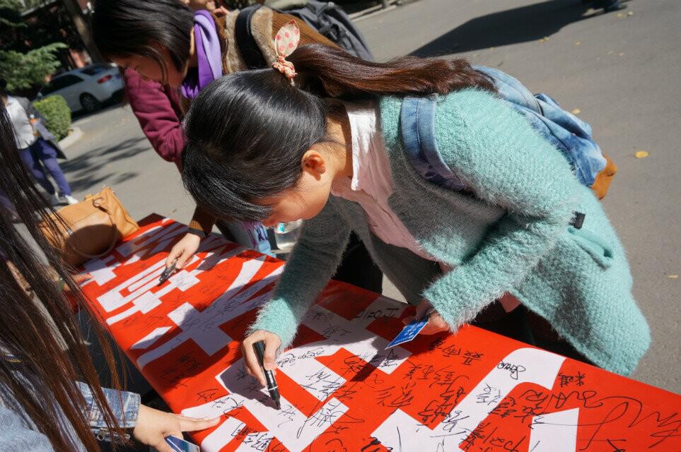 活动现场简洁严肃,路过的同学们纷纷在印有这两行字的条幅上庄严签字,表明自己的学术心志:不抄袭,不做假。活动现场得到同学及老师的大力支持,还吸引了许多外国留学生。他们纷纷表示,学术道德不分国界,并在条幅上认真地写下名字。校研会学术部的同学们还精心设计了印有“遵守学术道德,恪守学术规范”的书签,作为小礼物发放给签字的同学和老师。