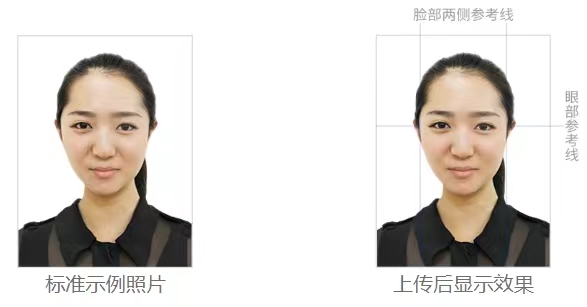 以上照片,考生不得化妆,不得佩戴眼镜、隐形眼镜、美瞳等;照明光线均匀,脸部无高光、光斑,无阴影、红眼等;头发不得遮挡脸部或造成阴影,要露出五官,并能如实地反映本人近期相貌(不可用Photoshop等照片编辑软件处理,不可用照片进行翻拍)。