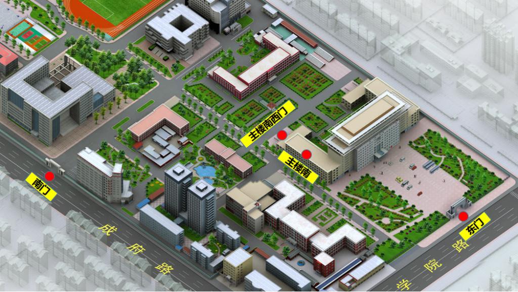 考生入口:由学校东门或南门进校,由主楼南的西门进入考区,具体位置见图1。